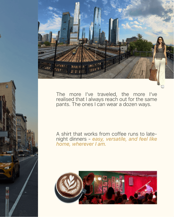 “Summer in Italy, help me pick the perfect fits.” It interprets your request and curates a capsule tailored to your vibe, your context, your story.
