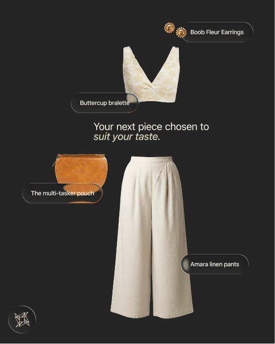 Because, to us, style isn’t just about clothes, it’s about context. Our AI stylist learns your personal preferences, interprets your mood, and curates capsule collections that evolve with you - just like your preferences. Think Pinterest meets personal shopping, but smarter.